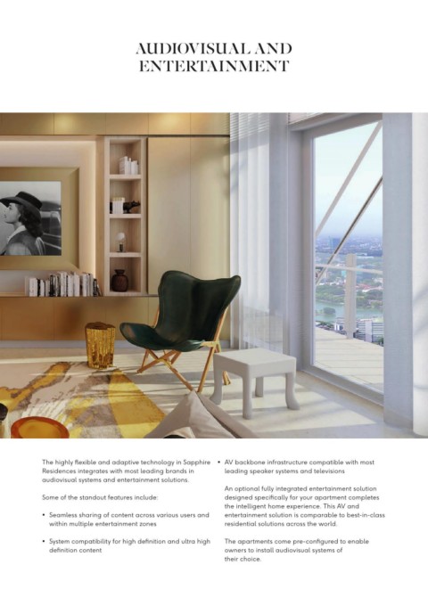 • System compatibility for high defi nition and ultra high The apartments come pre-confi gured to enable